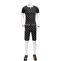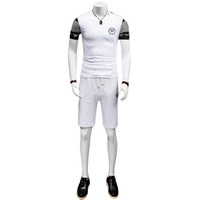 寬松牛仔短褲搭配三:藍色短T+寬松白色牛仔短褲+小西服