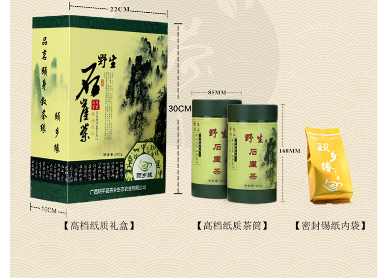 【200g/盒】頤鄉(xiāng)緣野生石崖茶正宗高山綠茶茶葉桂林昭平平樂炒青一級禮盒200gYXY6