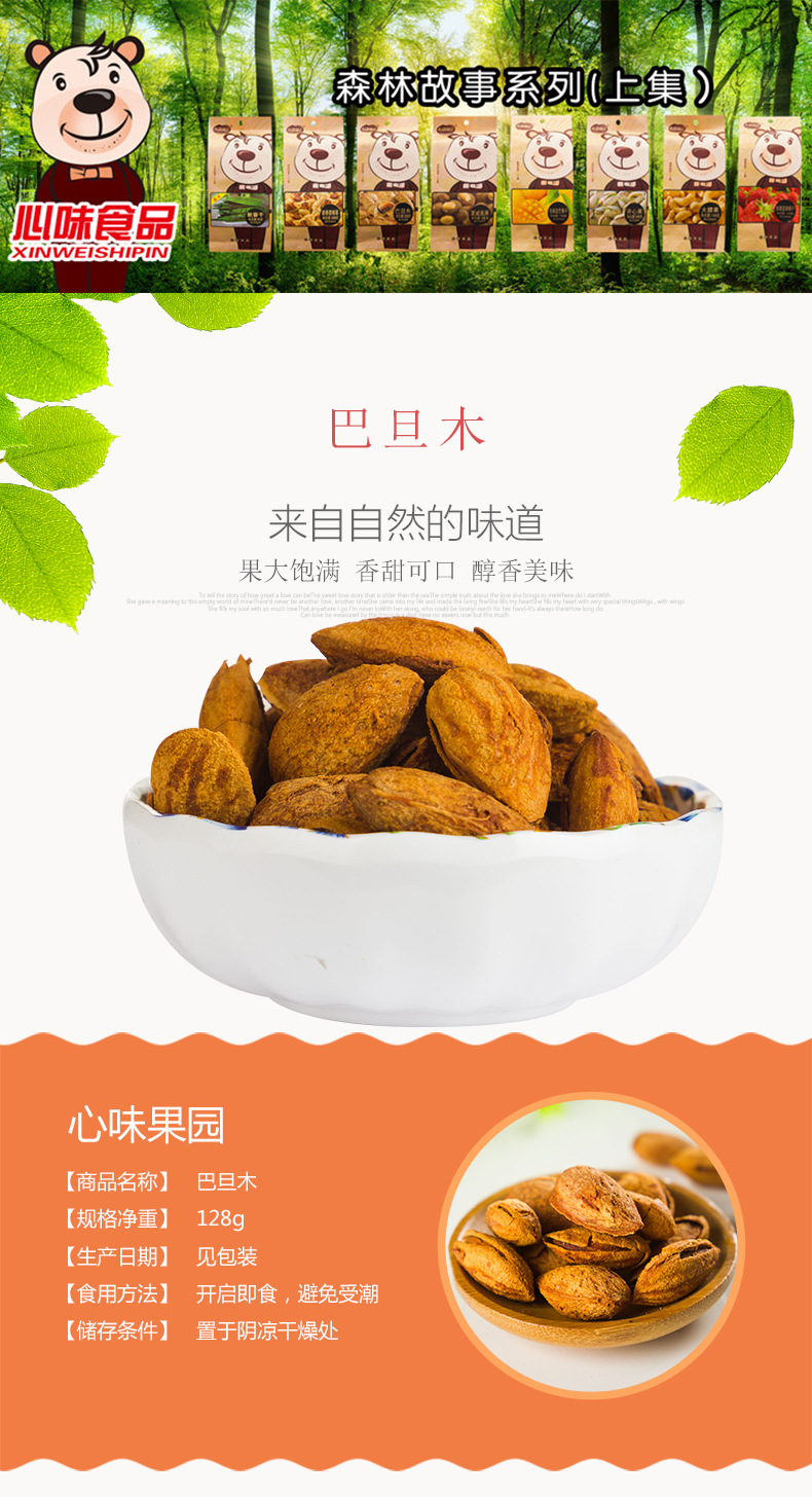 【128g/包】心味果園128g巴旦木薄殼杏仁新疆特產(chǎn)大扁桃仁堅果零食