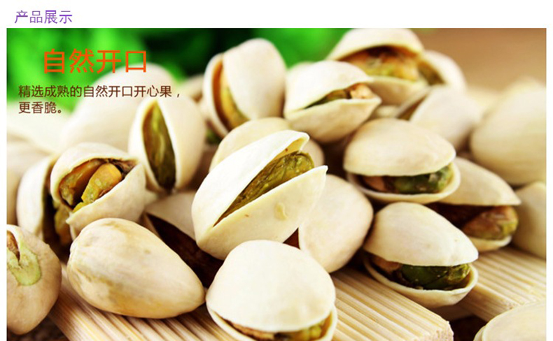產(chǎn)品描述:精選飽滿自然成熟開心果,顆粒飽滿均勻,開口率高,散發(fā)著自然的清新果香。入口松脆濃郁,果香撲鼻而來(lái),一吃就停不下來(lái)!