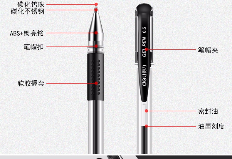 【100支】中性筆0.5MM黑色水性筆辦公文具碳素筆100支散裝簽字筆子彈頭水筆