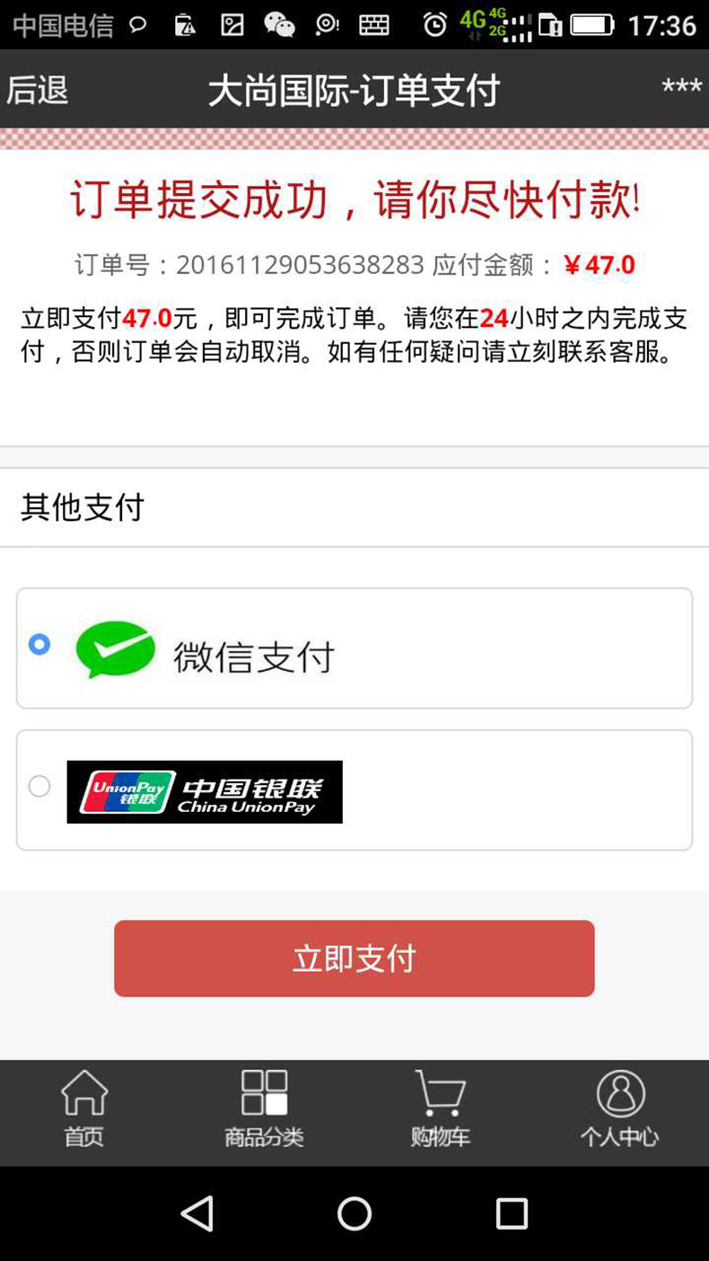 使用步驟:任意商品購買→購物車→去結(jié)算→?選擇優(yōu)惠券?確認金額?提交→?提交成功?選擇支付方式?立即支付