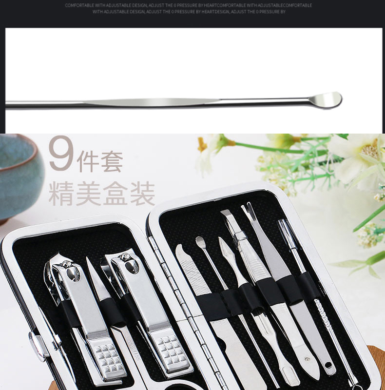 [足善堂] 【9件套】足善堂德國工藝指甲刀套裝不銹鋼修腳刀剪指甲鉗美甲工具家用去死皮