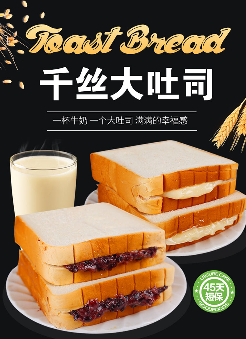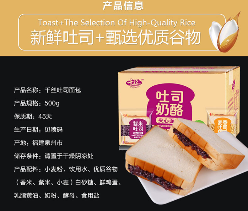 【500g】零趣千絲吐司面包整箱 手撕全麥紫米面包早餐糕點心網(wǎng)紅小零食品