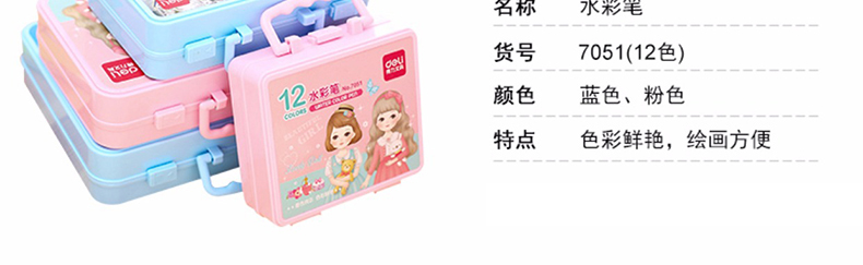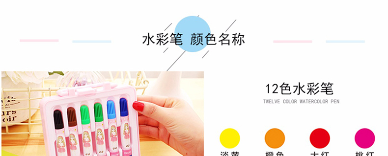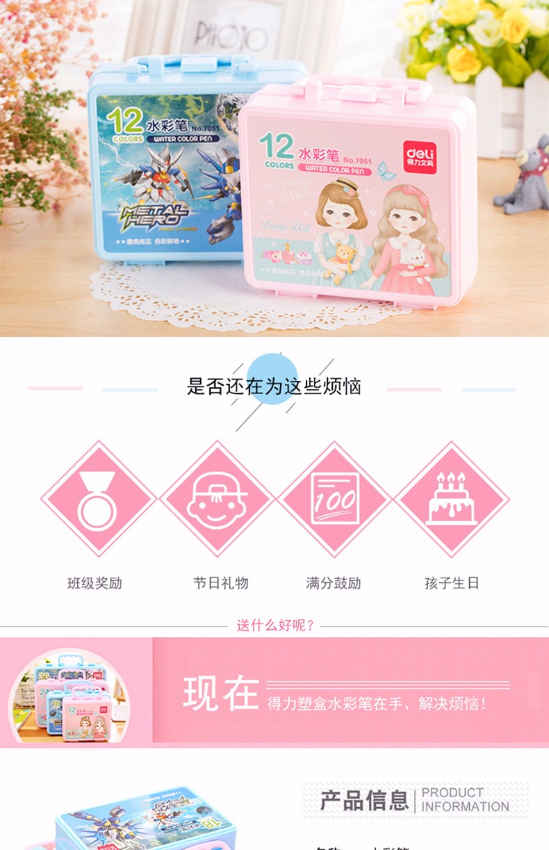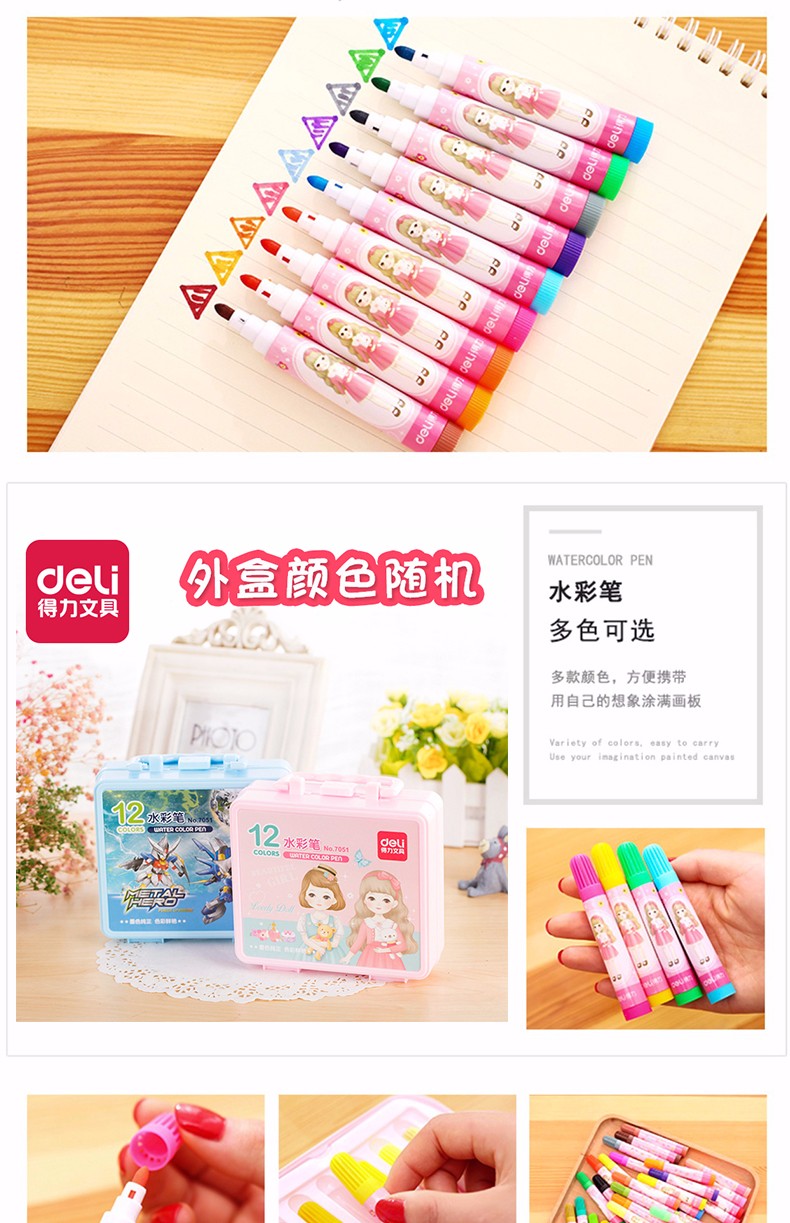 【12色】得力水彩筆12色套裝兒童幼兒園可水洗彩色畫筆