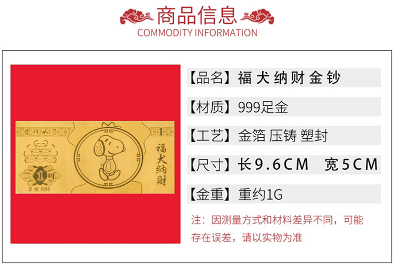 名稱:福犬納財999黃金禮品