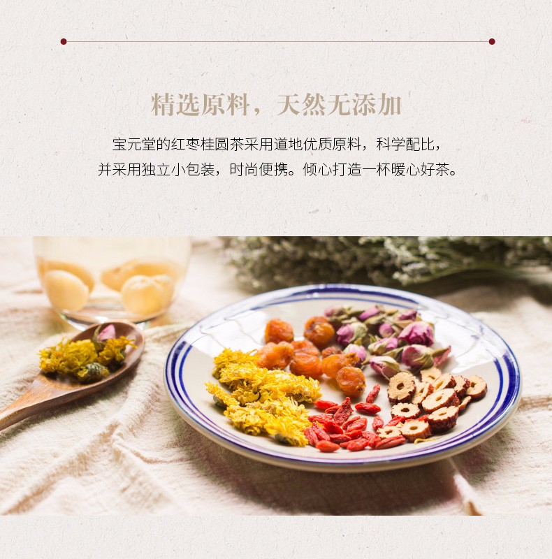 產(chǎn)品描述:寶元堂紅棗桂圓茶采用優(yōu)質(zhì)原料,科學(xué)配比,并采用獨(dú)立小包包裝,時(shí)尚便捷