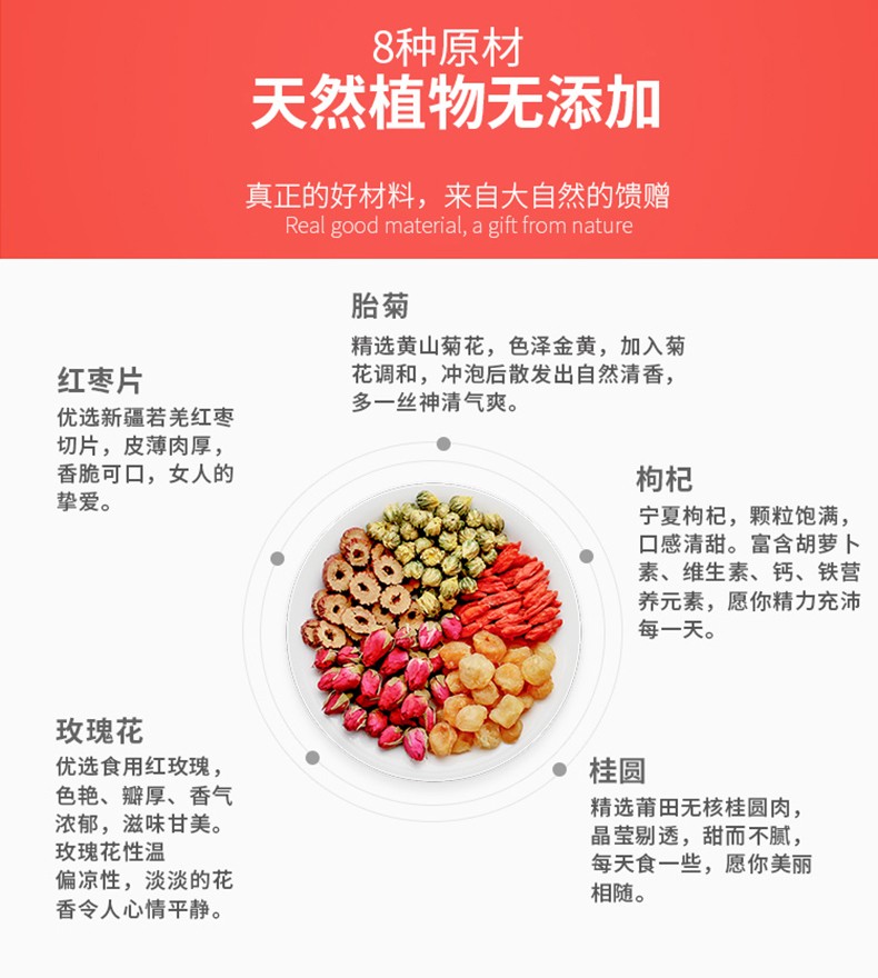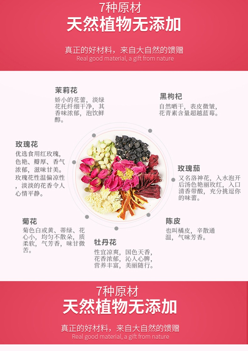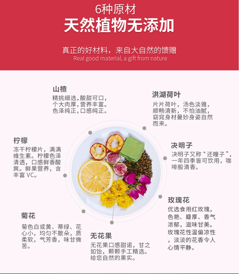 配料表: 重瓣紅玫瑰、荷葉、菊花、山楂、決明子