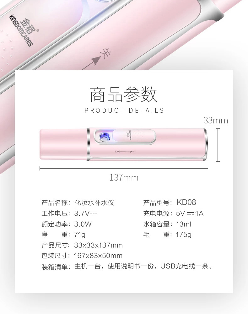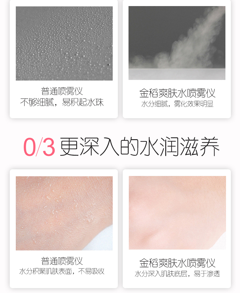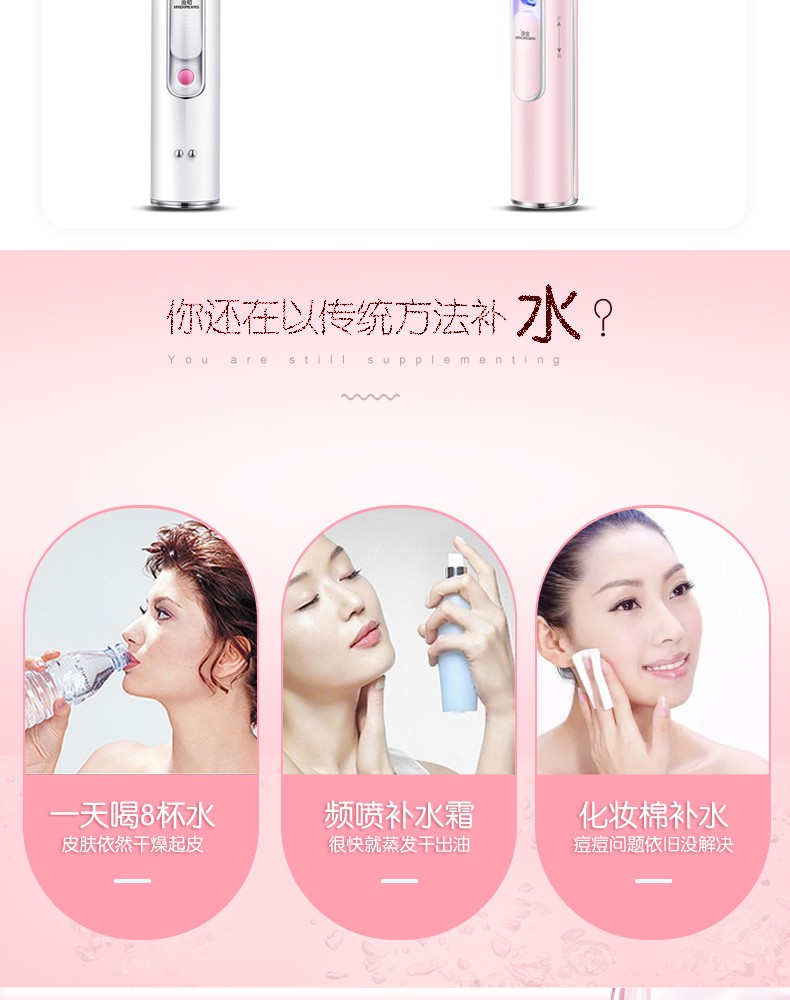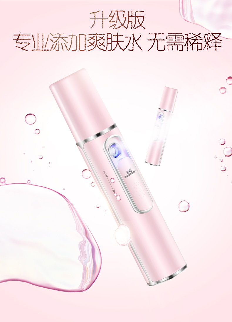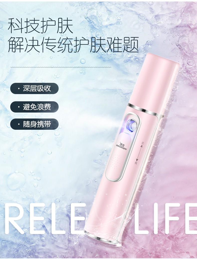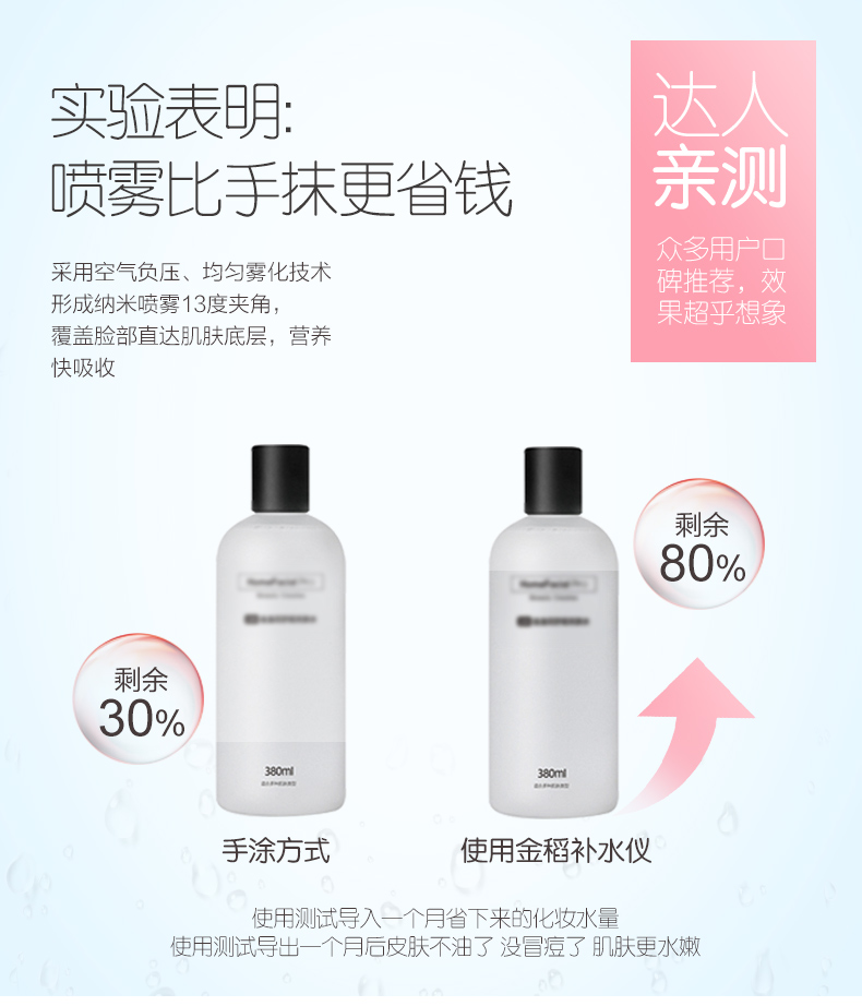 產(chǎn)品描述:通過高頻霧化技術(shù),將水霧化為納米水粒,可輕松透過毛孔,輕柔補水不花妝,水分滲透肌底滋潤肌膚,采用空氣負壓、均勻霧化技術(shù),形成納米噴霧13度夾角,覆蓋臉部直達肌膚底層,營養(yǎng)快吸收