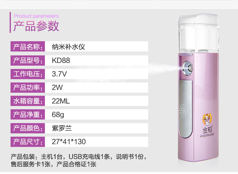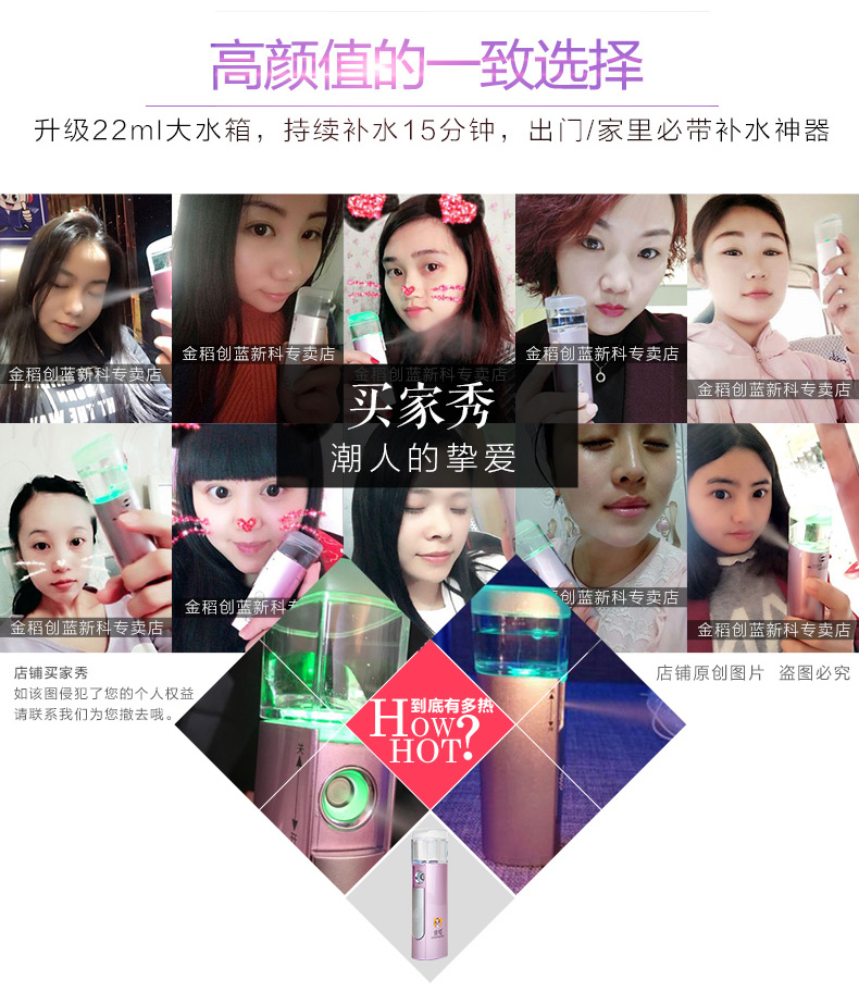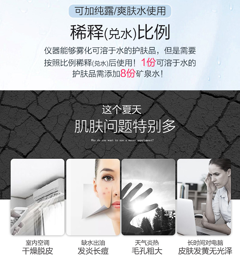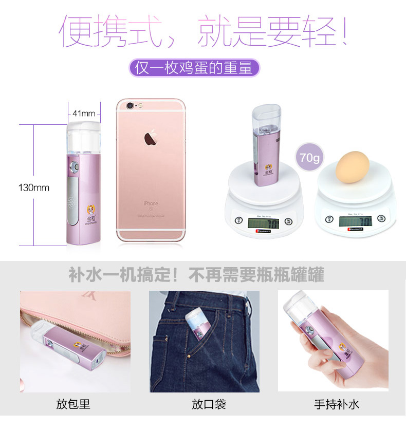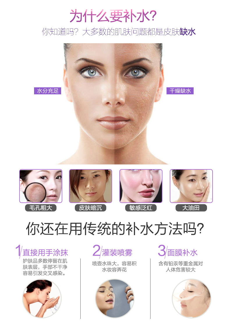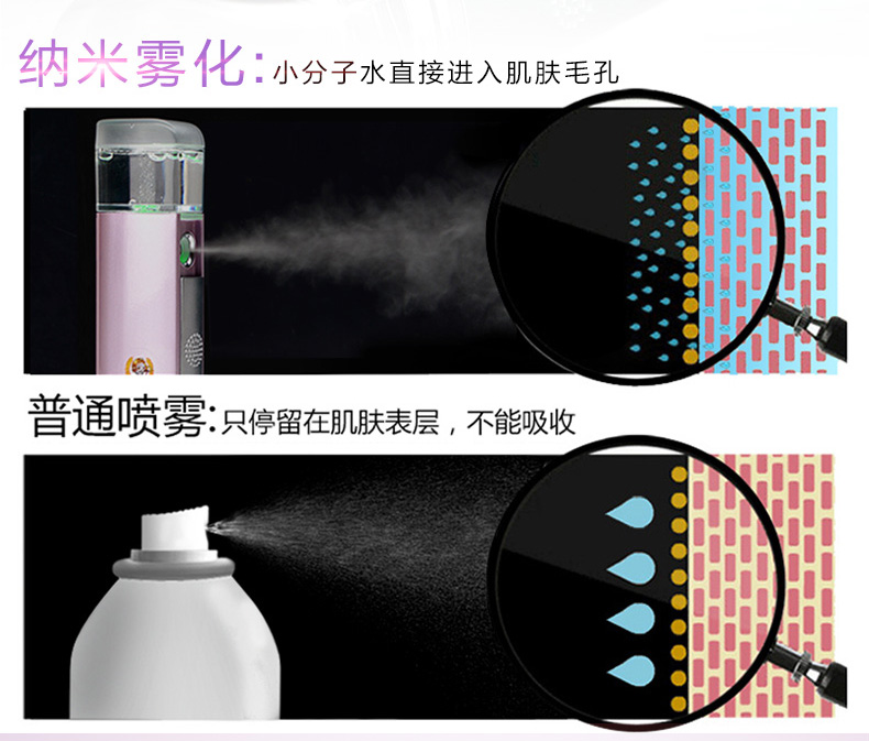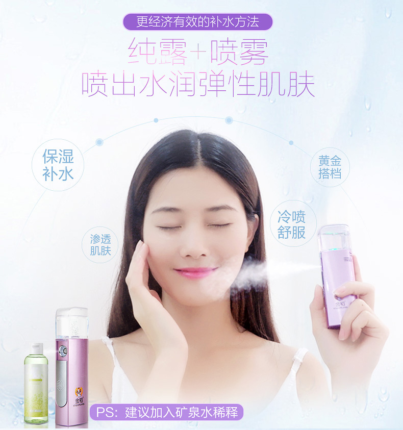 產(chǎn)品描述:納米離子補水均勻,出霧快節(jié)省等待時間,曬后修復舒緩皮膚,保濕補水滲透肌膚,冷噴舒服