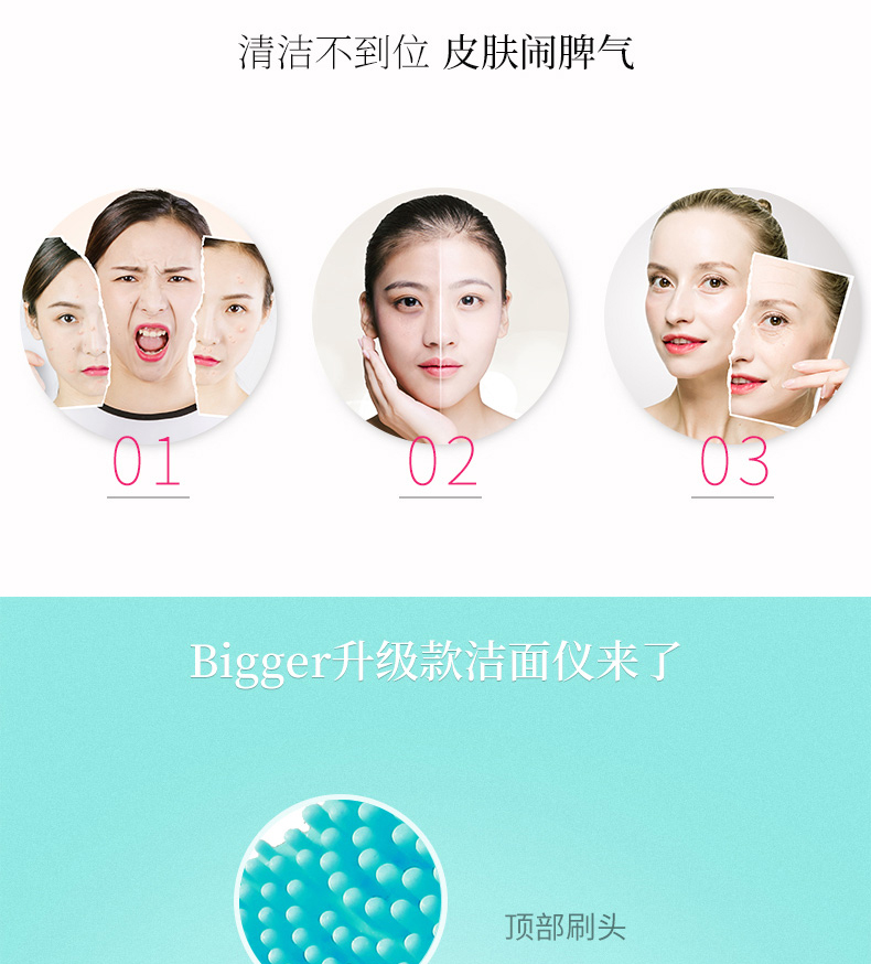 產(chǎn)品描述:通過(guò)不同高頻的震動(dòng),也可根據(jù)不同的模式需求打造臉部潔凈舒服狀態(tài),高頻率震動(dòng)帶走毛孔內(nèi)皮膚油脂等可全身水洗,無(wú)懼浴室洗澡使用