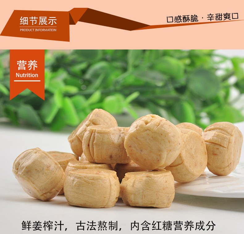 產(chǎn)品描述:鮮姜榨汁,古法熬制,內(nèi)含紅糖營(yíng)養(yǎng)成分,傳統(tǒng)工藝制作,入味均勻,保證了口感爽口,獨(dú)立包裝,攜帶方便,隨時(shí)隨地享受美味