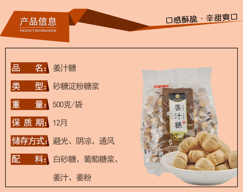 山東特產(chǎn)姜汁糖1000g老姜糖生姜糖手工姜糖喜糖姜糖塊500gX2袋