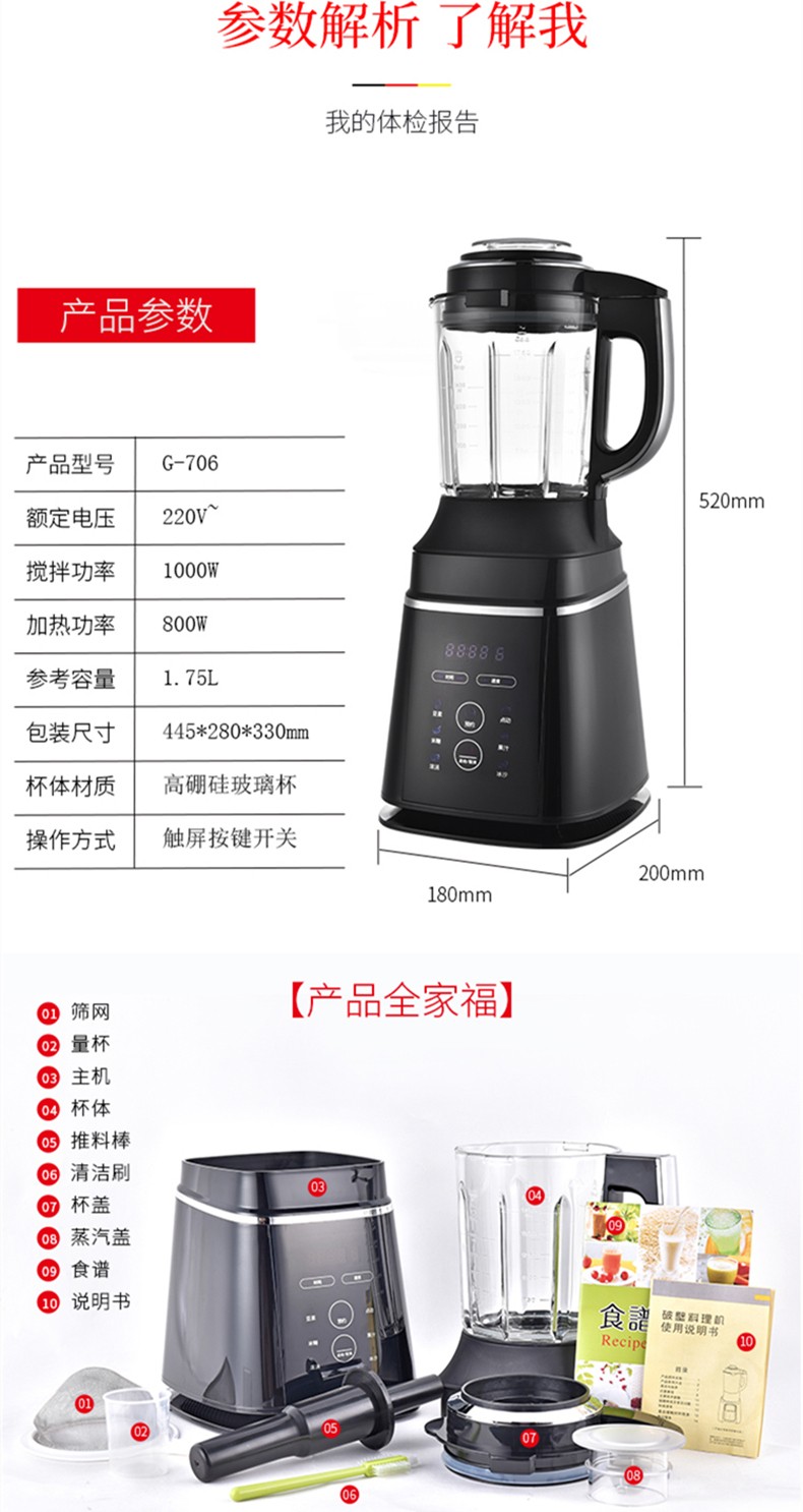 【1.75L】SAST/先科破壁料理機家用豆?jié){多功能全自動榨汁小型攪拌養(yǎng)生輔食