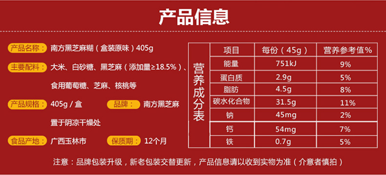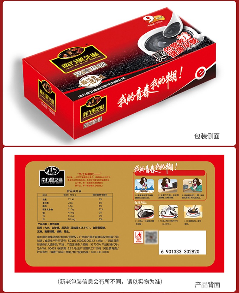 【405g*1盒裝】南方黑芝麻糊經(jīng)典原味 營養(yǎng)代餐粉早餐即食食品 夜宵